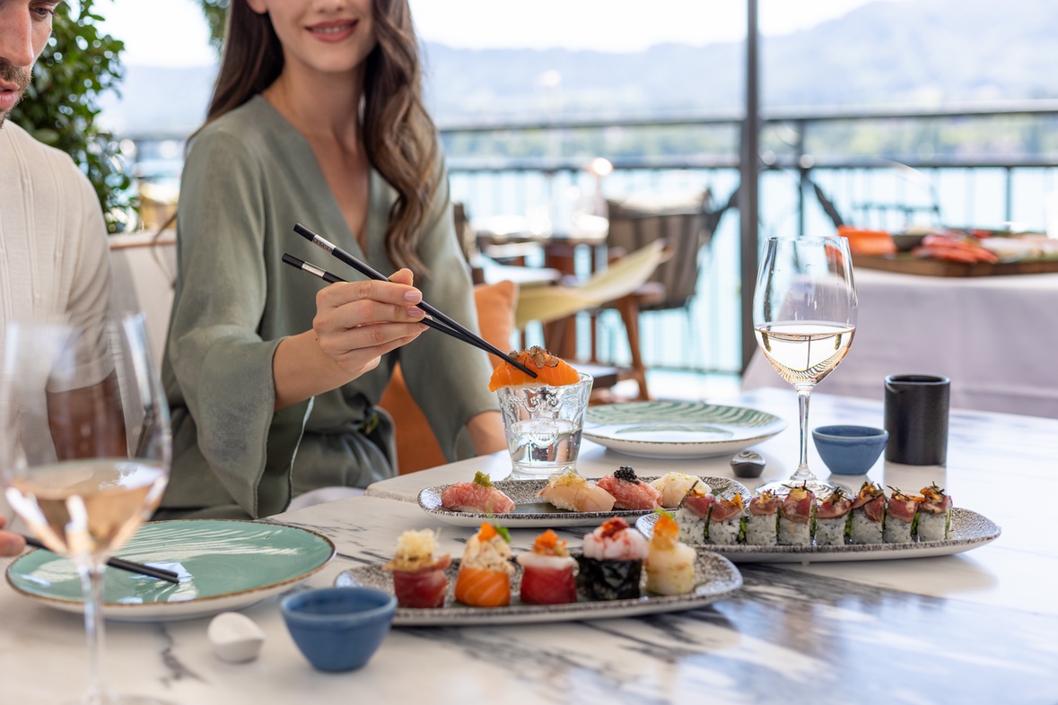 Im Erdgeschoss des Hauses befindet sich das Eden Kitchen & Bar, eine mediterran-italienisch inspirierte Küche unter Leitung von Executive Chef Marco Ortolani. Dort treffen großzügige Glasfronten mit Blick auf den Zürichsee auf eine offene Show-Küche, in der mit saisonalen, möglichst regionalen Zutaten gearbeitet wird. Gerichte wie Paccheri mit Hummer oder Squid Carbonara zeigen die kulinarische Ausrichtung: hochwertig, doch nicht steif, mit einem Anspruch an Handwerklichkeit und Geschmack.